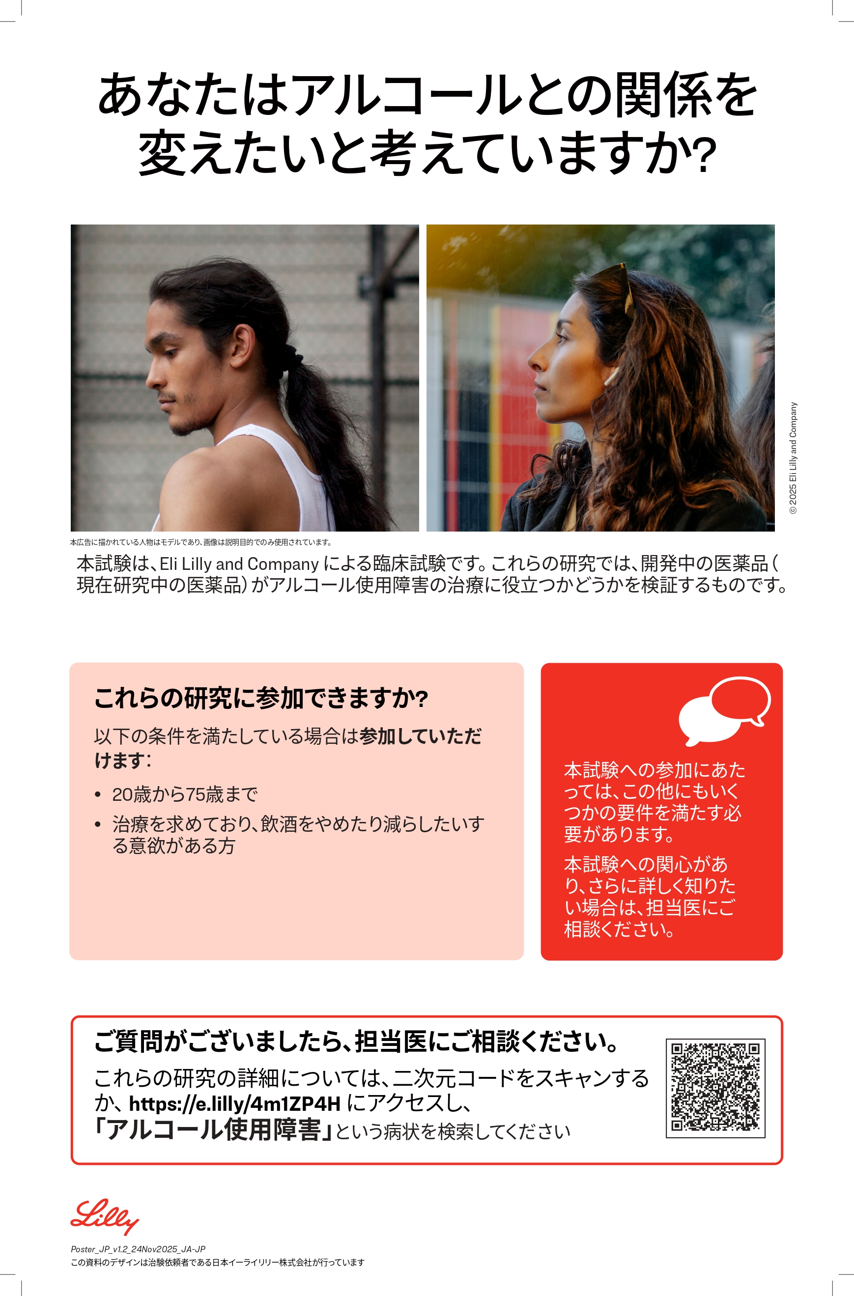 現在、当院にてアルコール使用障害の治験を実施しております。ご興味のある方は、担当医にご相談をください。